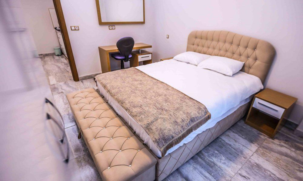 Temiz ve hijyenik odalarımız, ortopedik yatak, antialerjik yorgan ve yastık menüsü, modern ve işlevsel banyosu ile, evinizden uzakta, kendinizi evinizde hissetmeniz için tasarlanmıştır.